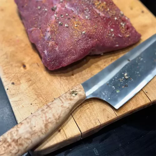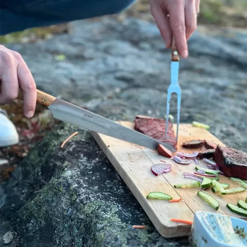 I absolutely love using the large chef's knife from EKA1882. It's perfect for handling meat. I also rely on their paring knife and carving fork for precise work.