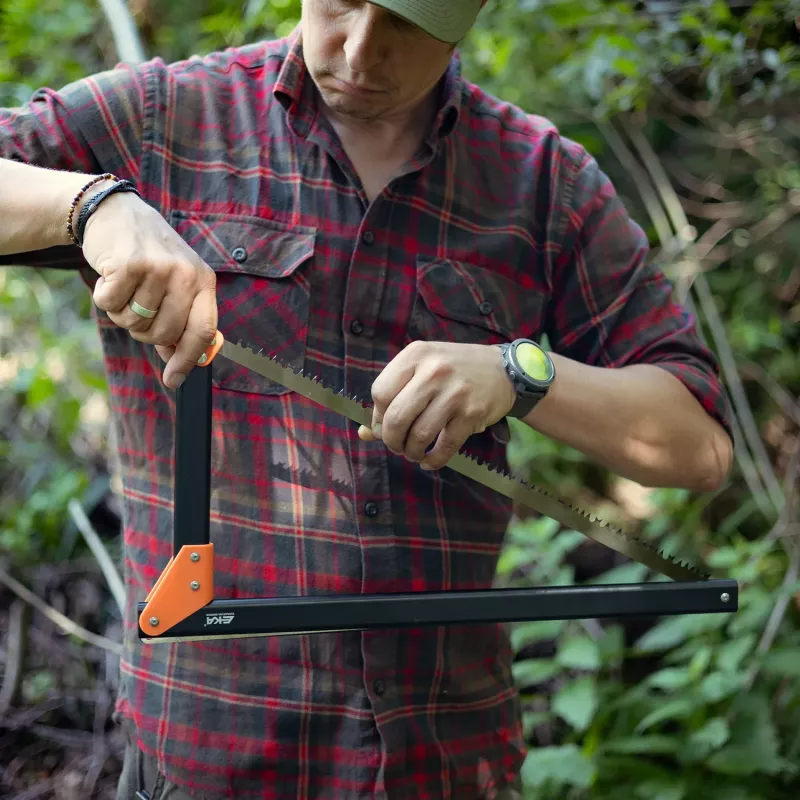 Experience the versatile EKA CombiSaw. This compact and foldable saw is ideal for outdoor adventures, DIY projects, and more. With three interchangeable Swedish steel blades, you can tackle any cutting task.