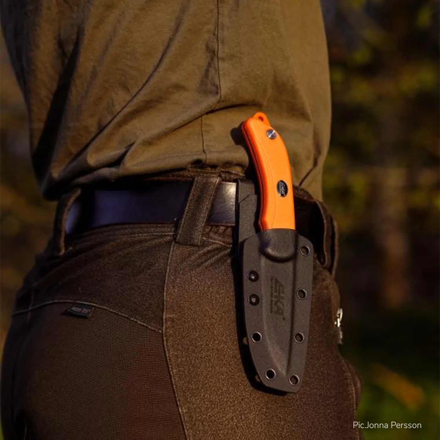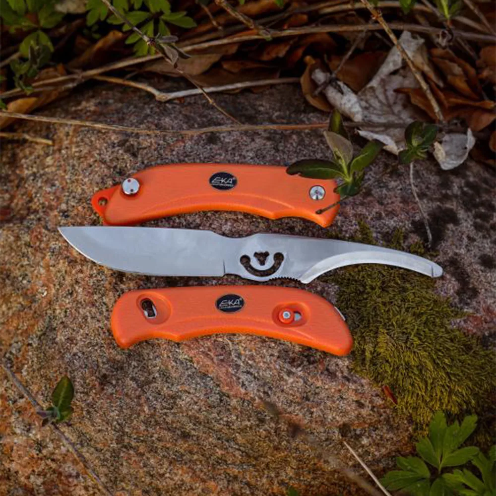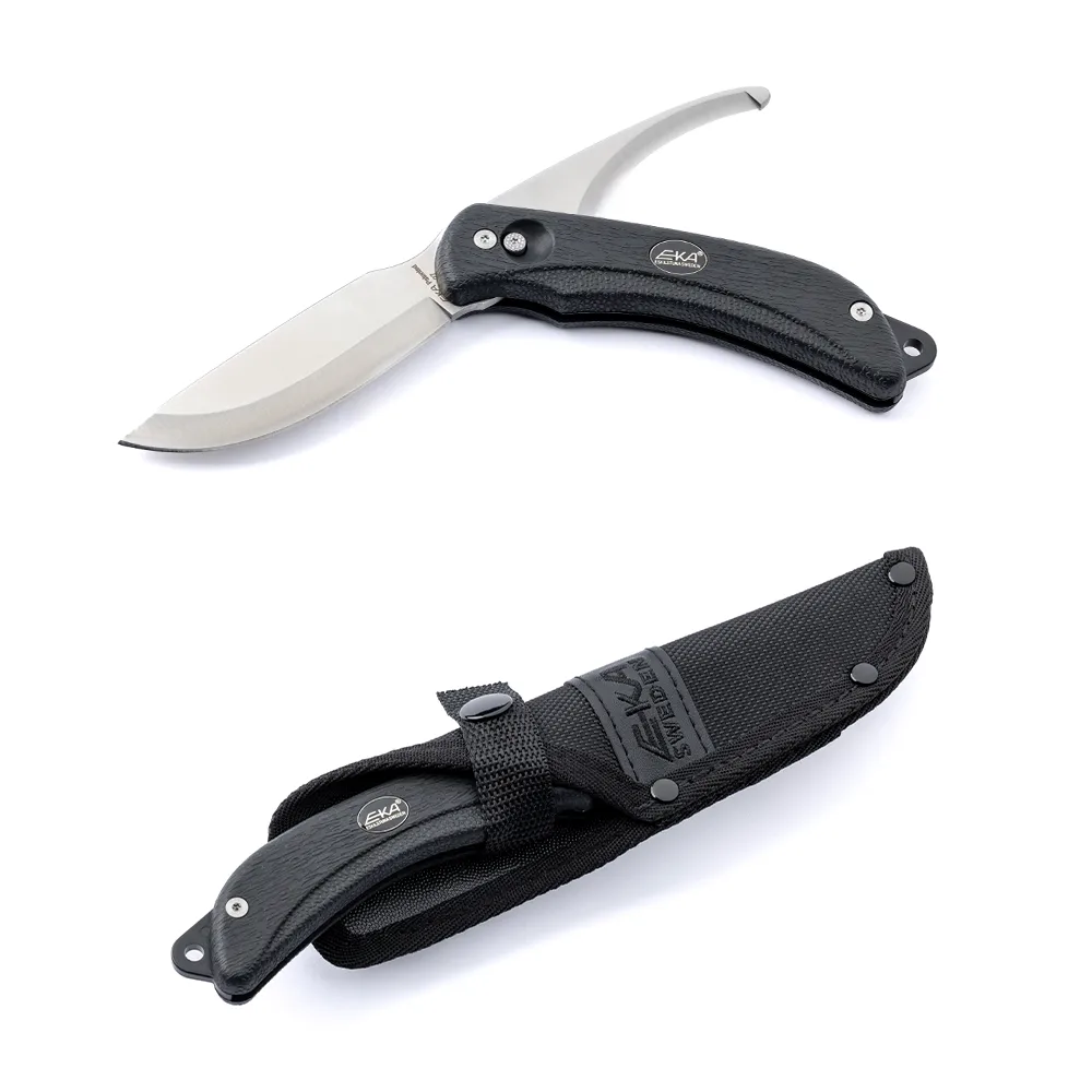 The EKA SwedBlade G4 was released in 2020. Just like the G3 model, the well-proven and innovative pivot mechanism is used. A mechanism which function can combine two different blades in one and the same knife. In addition to being the ultimate knife for the hunter, as you quickly switch between the skinning blade and the stomach opener blade, you can now also disassemble the knife for cleaning and reassemble it - completely without tools. The EKA1882 G4 SwedBlade - patented hunting knife, unique in its kind.