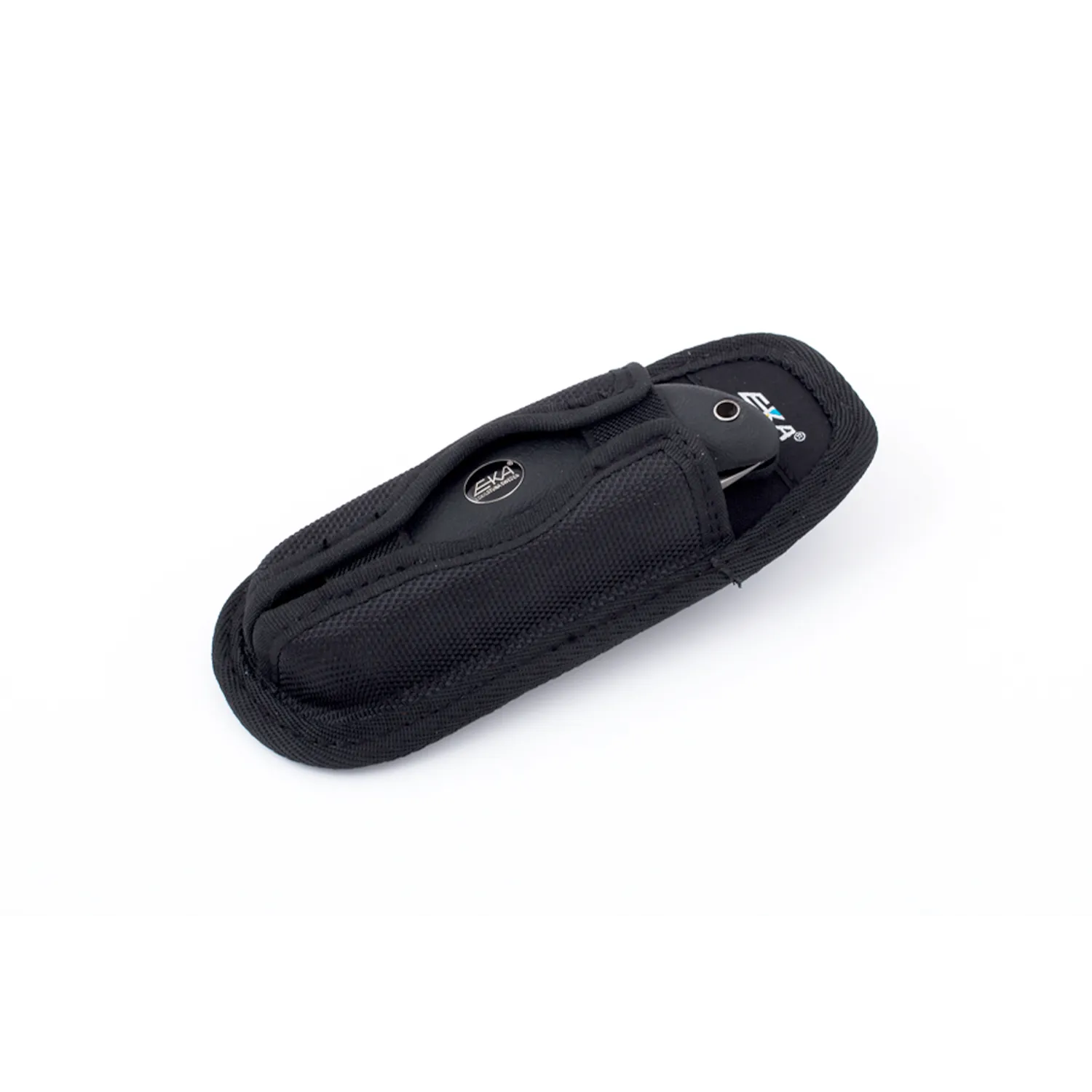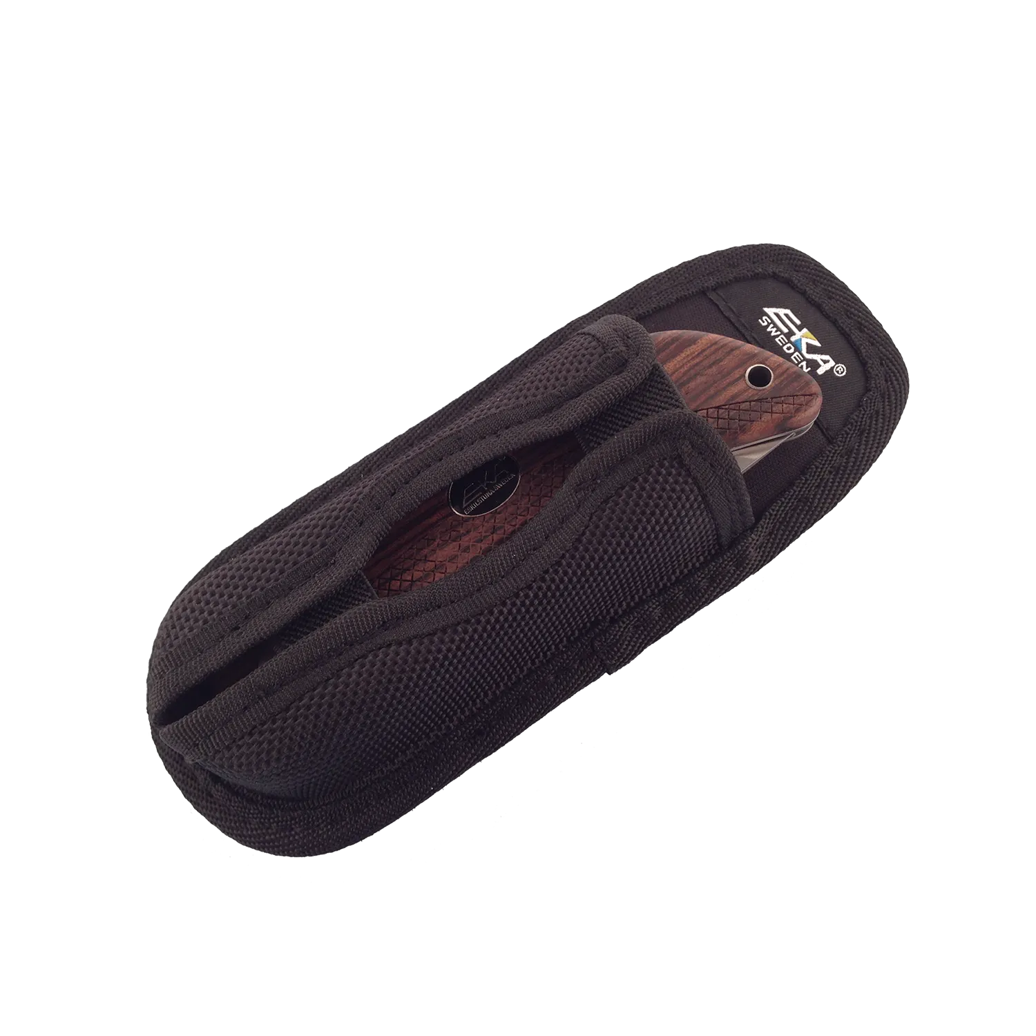 EKA® 5" Cordura Sheath — a durable and water-resistant knife sheath made from Cordura material. This 5" sheath fits the EKA1882 Swede 10 folding knife. The material is water-resistant and highly durable, with both glued and stitched edges. A belt loop on the back secures the knife in place, and thanks to its flexible fit, the Cordura Folding Large can also serve as a sheath for other folding knife models.