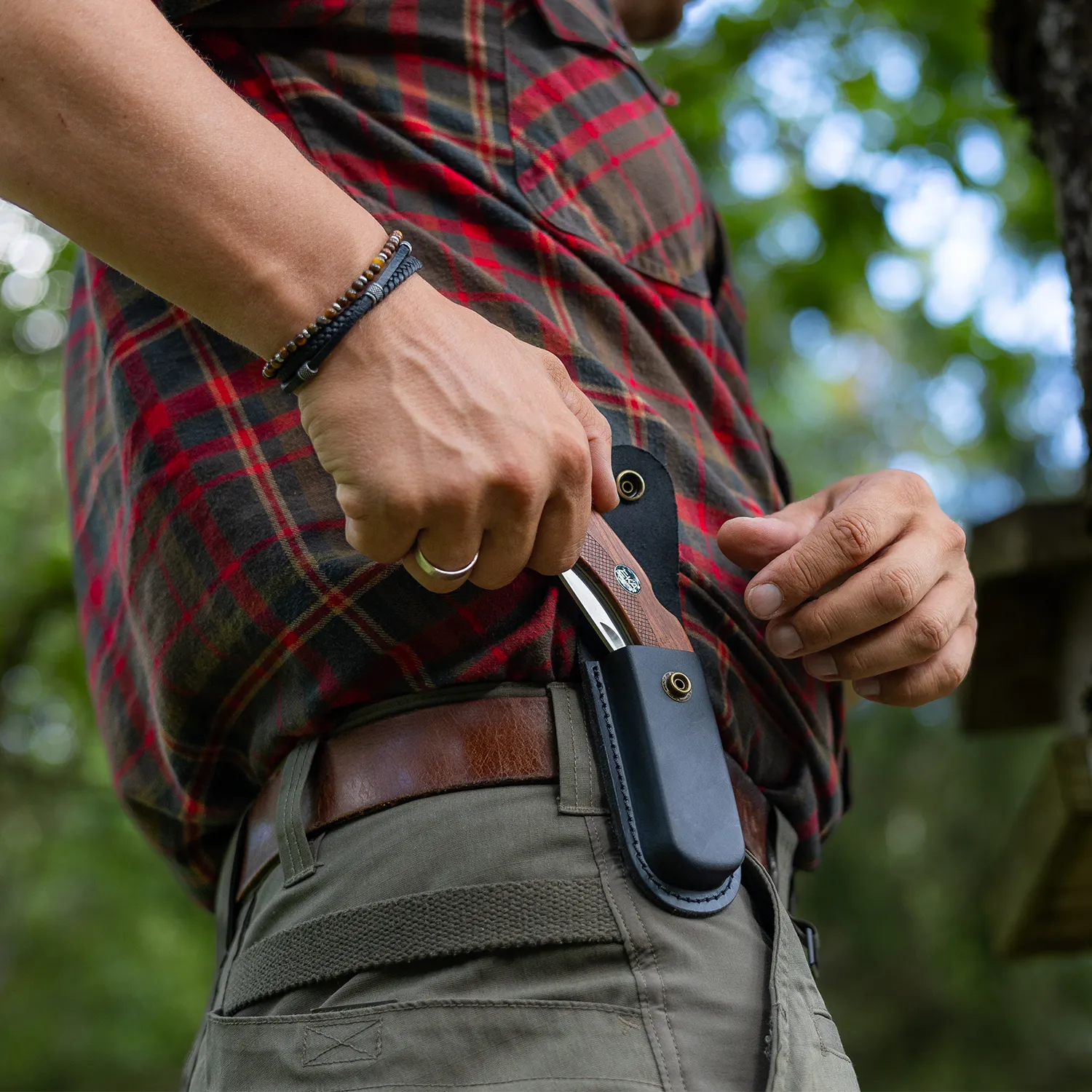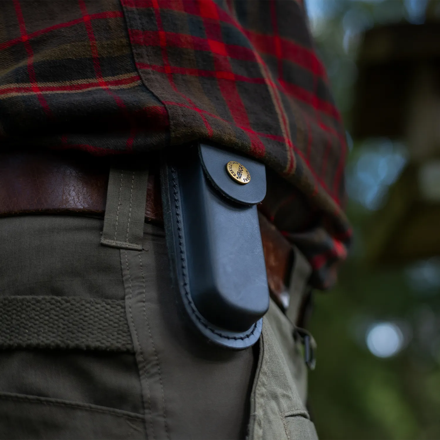 EKA® 5'' Leather Sheath Black is an elegant sheath for folding knives, specifically made for EKA® Swede 10. The leather material gives the sheath an exclusive feeling and can be securely attached to your pocket or belt with a belt clip.