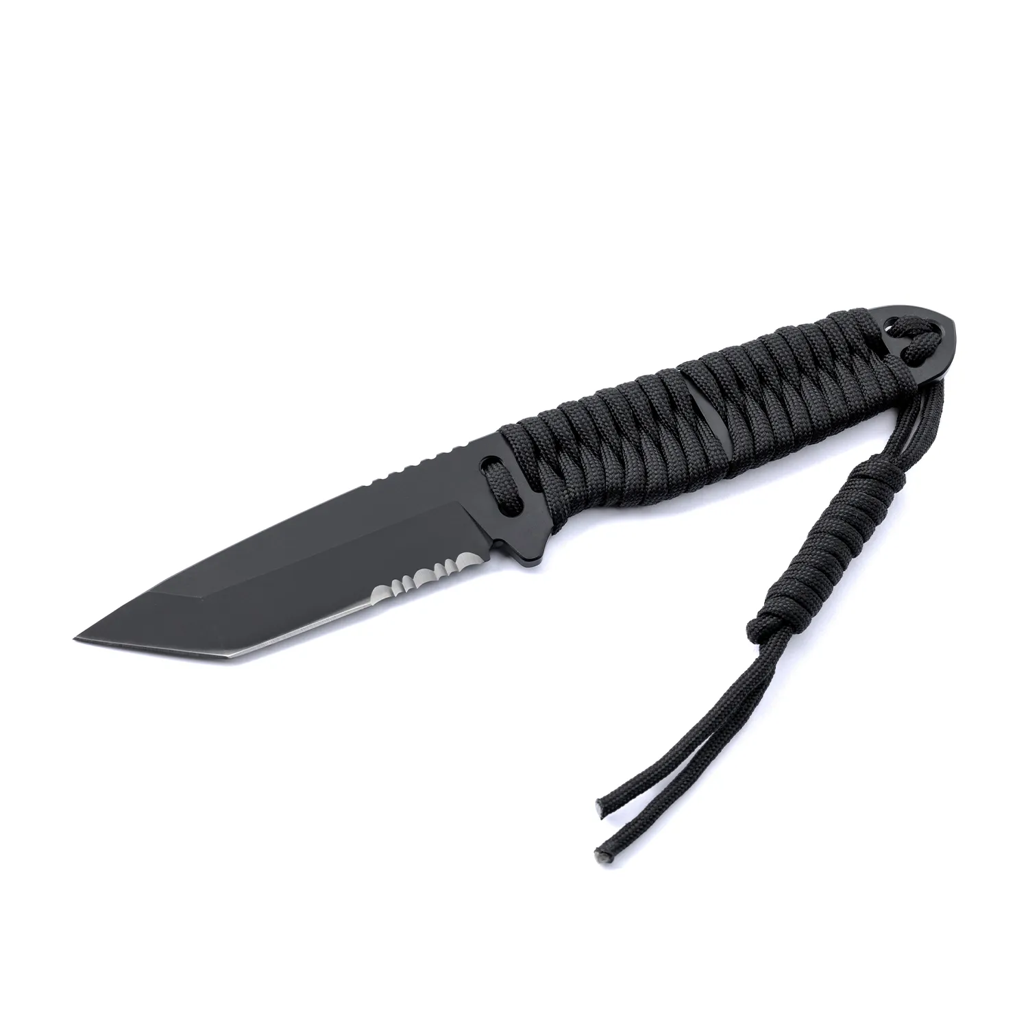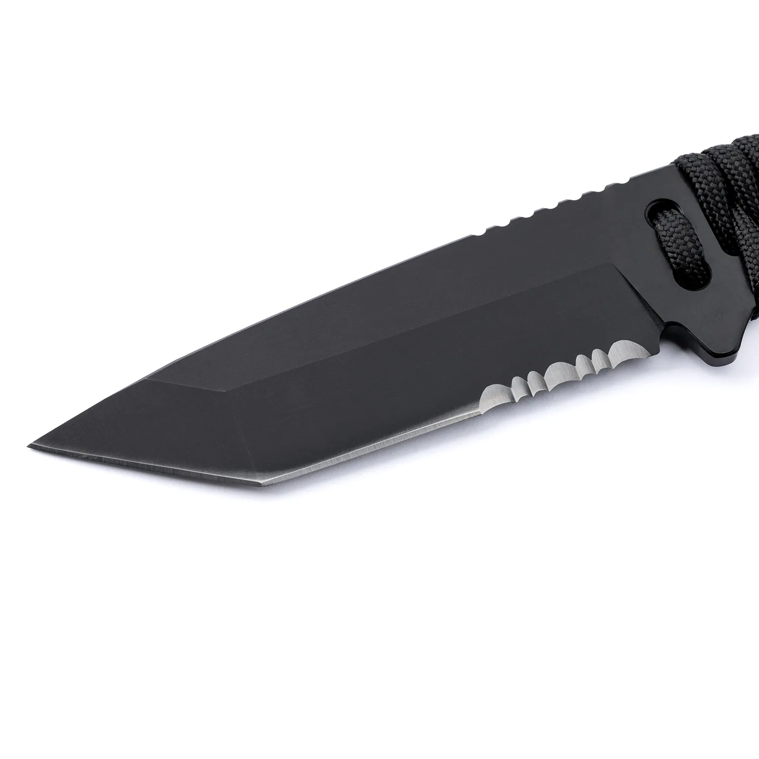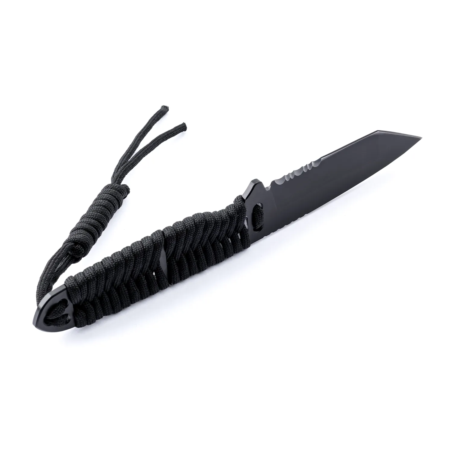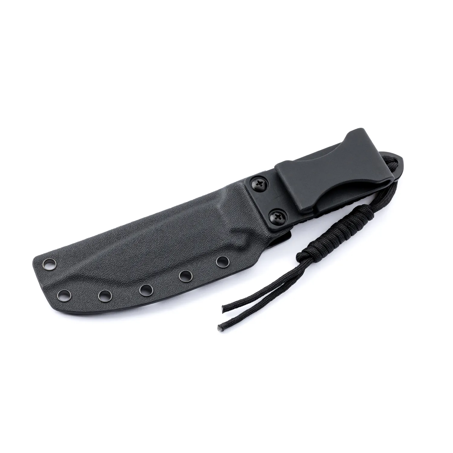 EKA® CordBlade T9 Black was built for just about anything survival, security, military and rescue. A knife with a pointed blade and full tang construction, makes it ideal for heavy duty use. A textured thumb grip on blade back for better control. The CordBlade T9 was conceived from our very popular Nordic T12 fixed blade knife. Instead of G10 scales the CordBlade T9 comes with a black Paracord wrapped handle and a kydex belt sheath that you can attach to a pack, a vest or just about wherever you need.