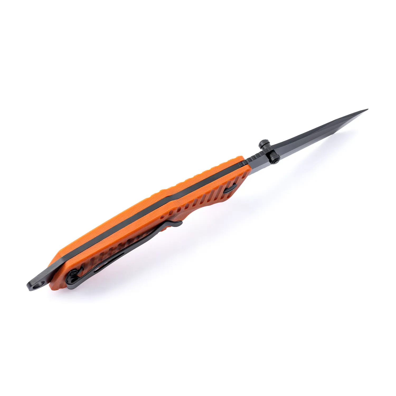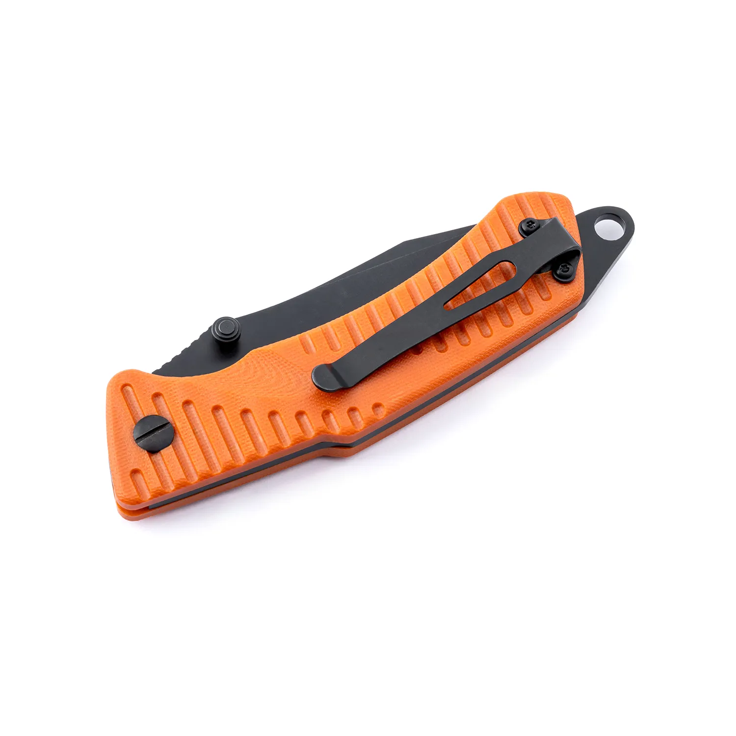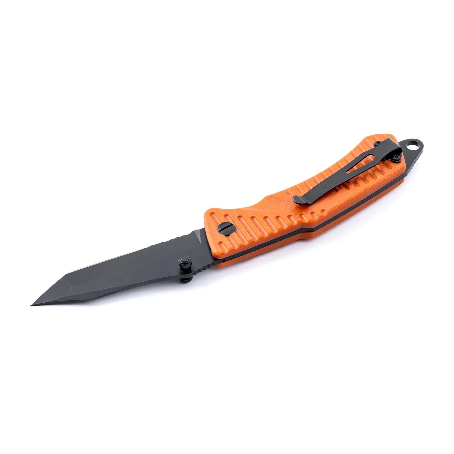 The Swede T9 Orange by EKA1882 is a heavy duty tactical folding knife with a unique Patented rear locking mechanism that creates a safe lock/unlocking motion with a confident grip. For Black coated pointed blade with a Tanto design suitable for an ultimate performance. Assembled with procession machine screws, allowing user to fine-tune blade action and complete disassembly for cleaning. The handle material is made by G10, offering 2 colors to choose from: orange and black. The Lanyard hole with a provided parachute cord is to avoid dropping your knife and a pocket clip is attached to keep it safe and where it should be.