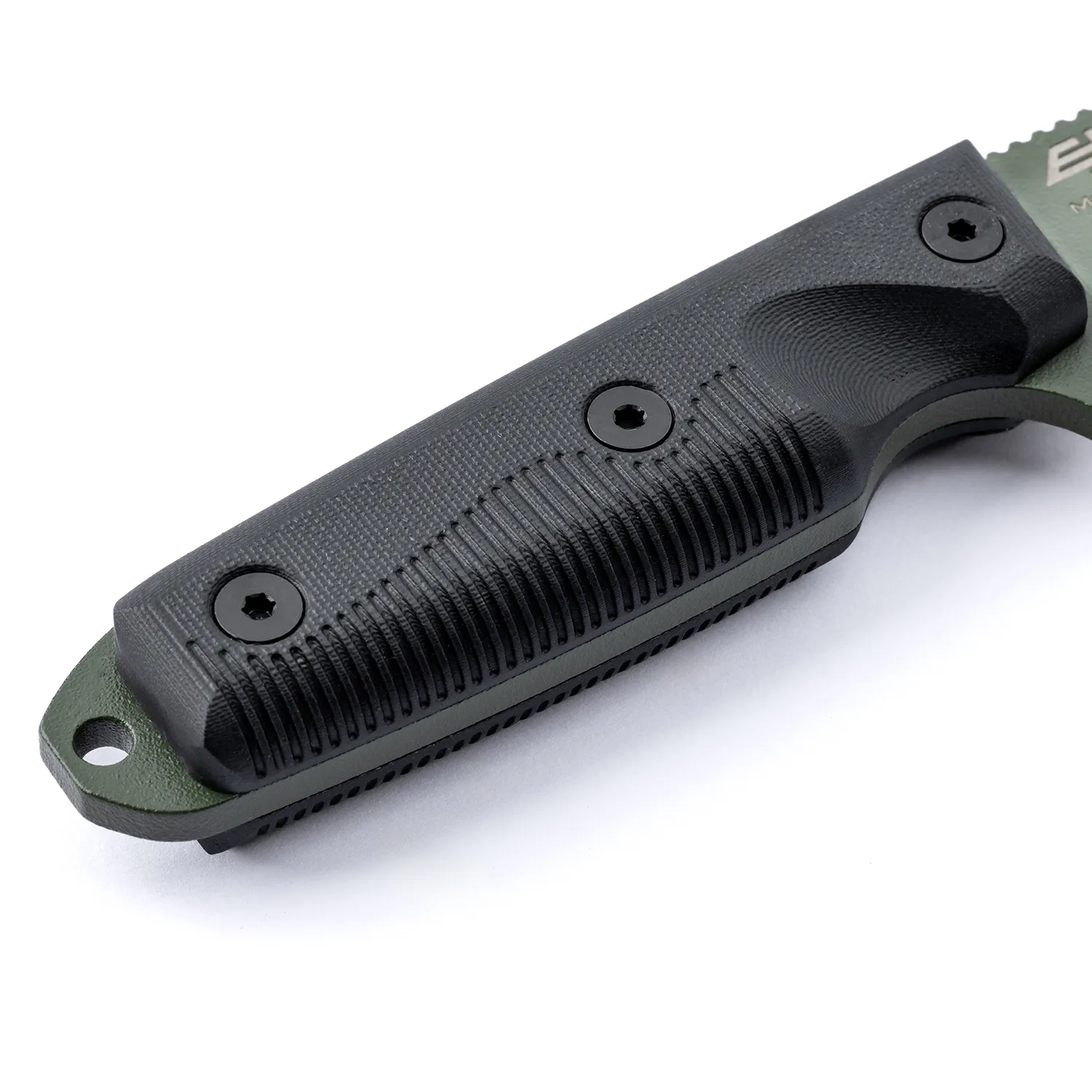 Fastbladskniv 100 % tillverkad i USA och skapad för allt från överlevnad och äventyr till jakt, vildmarksliv, säkerhet, militär och räddning. Det kraftiga bladet på 5 mm med full-tånge konstruktion gör kniven perfekt för tunga uppgifter. Texturerat tumgrepp på bladets rygg ger bättre kontroll, och det ergonomiska handtaget med fingerskydd säkerställer optimalt grepp även under tuffa förhållanden. Monterad med precision genom maskinskruvar, vilket gör det enkelt att ta isär för rengöring.