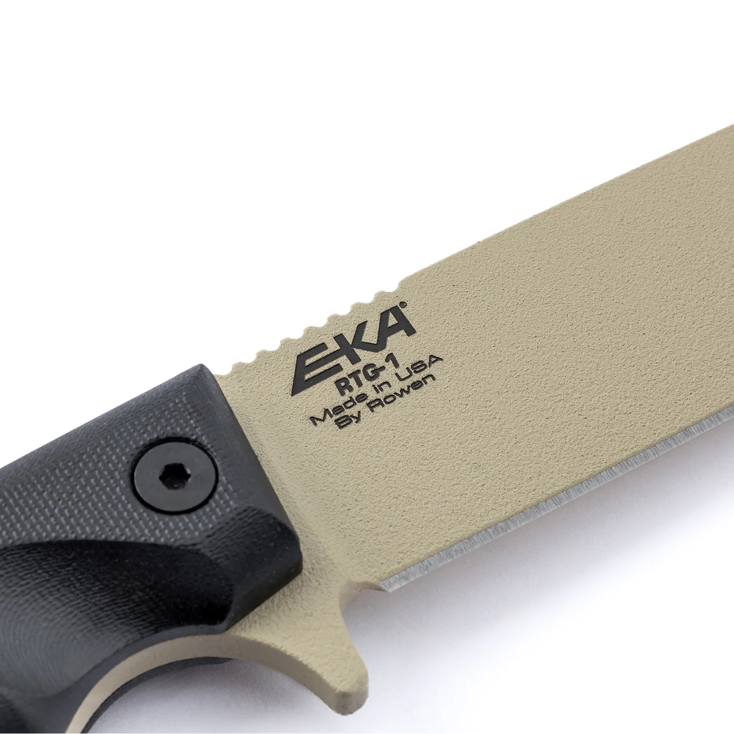 - Underhåll din EKA® RTG-1 Tan Blade, Black G10 Handle genom regelbunden slipning.